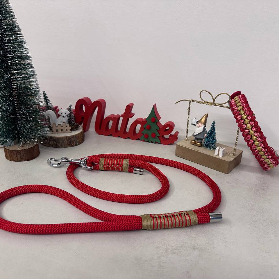La paracorde utilisée est en nylon, choisie pour son élasticité, sa douceur et sa résistance. Chaque brin est soigneusement inséré et fini afin d'éviter tout point faible : le résultat est un produit unique, durable et sûr, idéal pour les fêtes de fin d'année grâce à son association avec les laisses de Noël de lagamme Stella di Natale créée par ZekyShop.