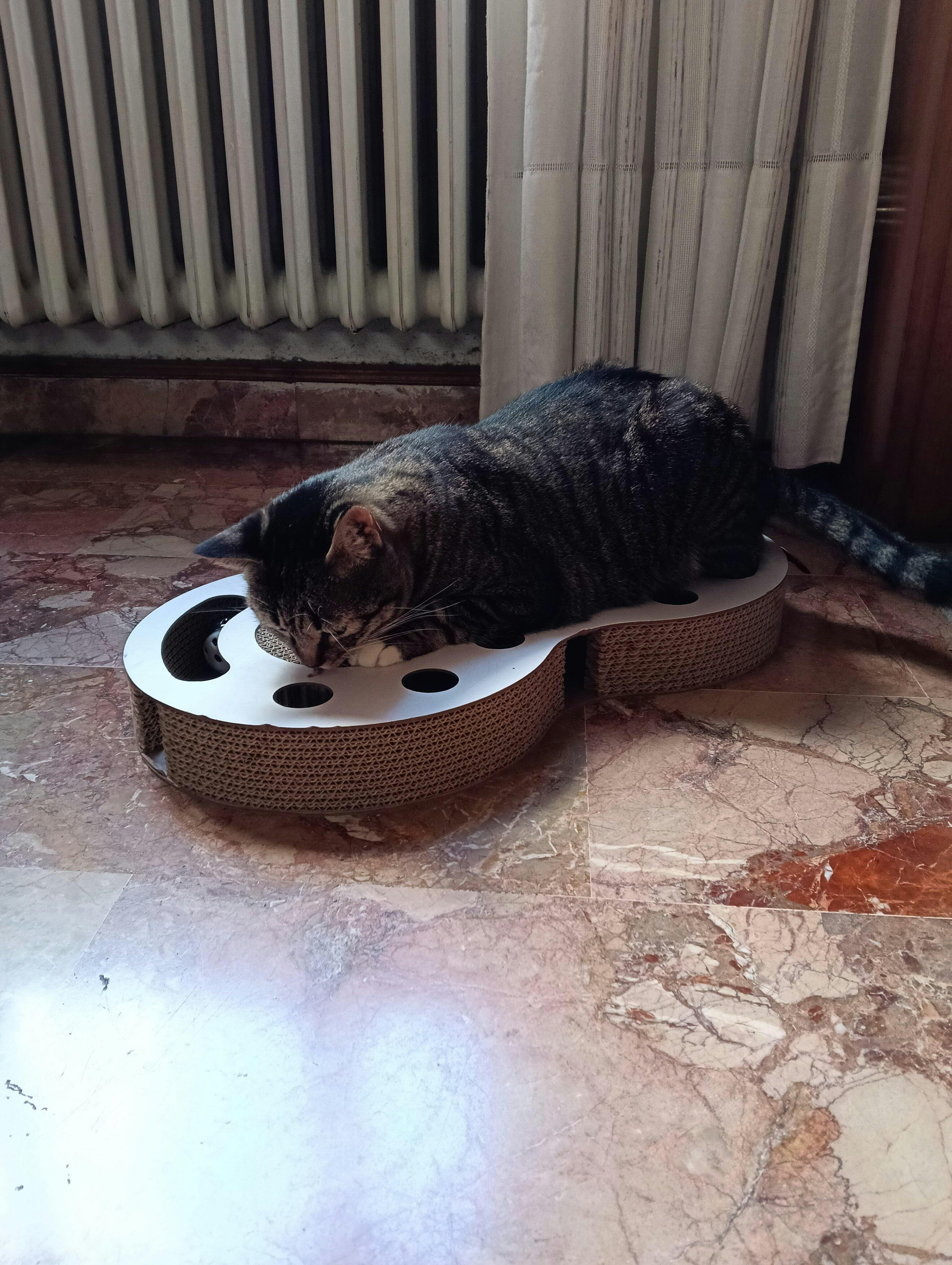 Le griffoir Snake est conçu pour stimuler l'instinct de chasse de votre chat. Il offre une surface idéale pour faire ses griffes et deux balles à grelots pour jouer. Fabriqué en carton ondulé durable, il convient également aux foyers comptant plusieurs chats. Cet accessoire allie fonctionnalité et design, pour garder votre chat actif et stimulé mentalement.